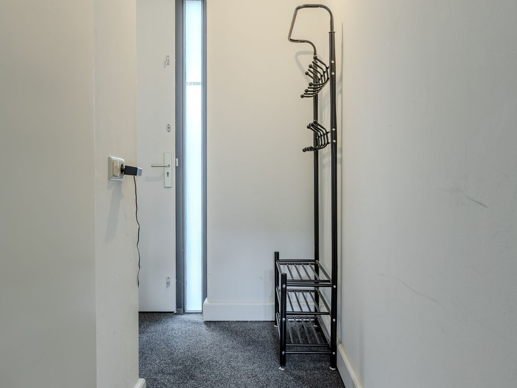 Hal/entree met meterkast (6 groepen en 2 aardlekschakelaars), unit stadsverwarming en toegang tot de toiletruimte, welke in 2021 in dezelfde stijl als de badkamer is vernieuwd en voorzien van wandcloset en fonteintje.