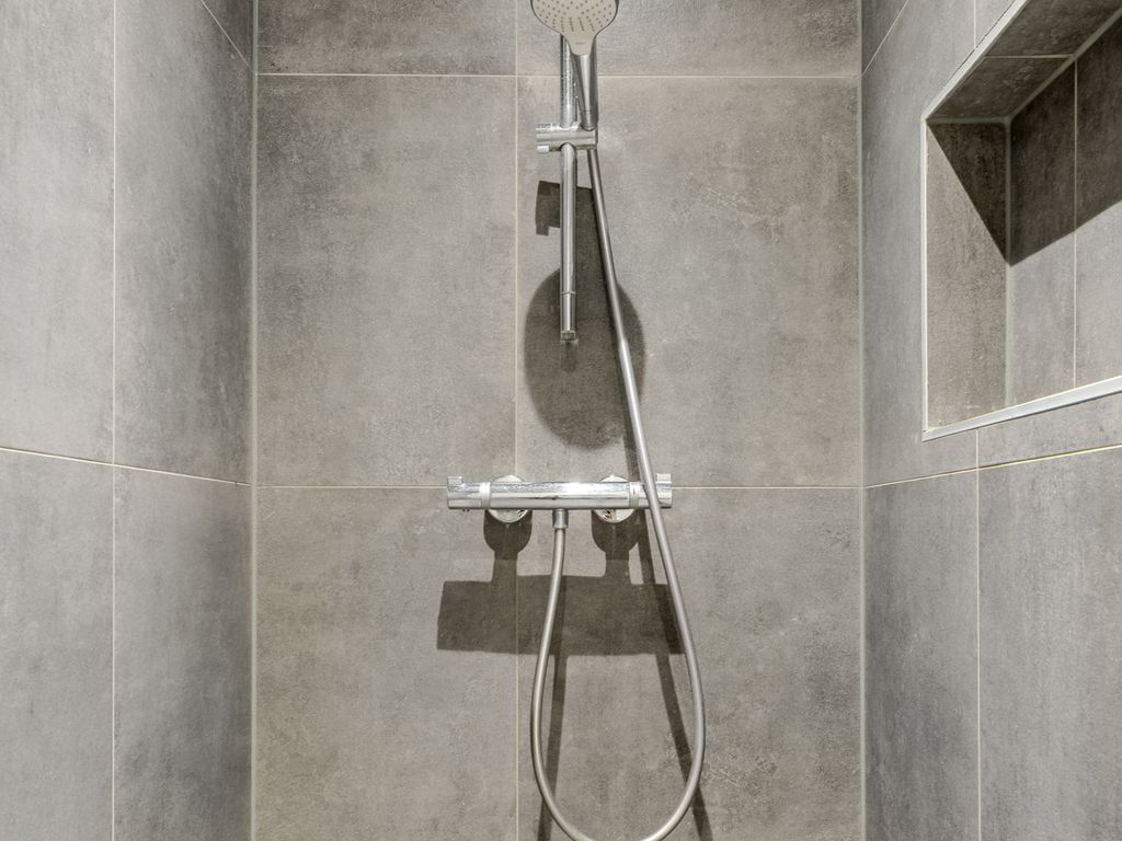 De badkamer is in 2023 volledig vernieuwd en heeft door een slimme tussenmuur een praktische indeling gekregen. De ruimte is luxe en hotel-chique afgewerkt en voorzien van een ruime inloopdouche, wastafelmeubel en wandcloset. Ook op deze verdieping ligt dezelfde laminaatvloer.