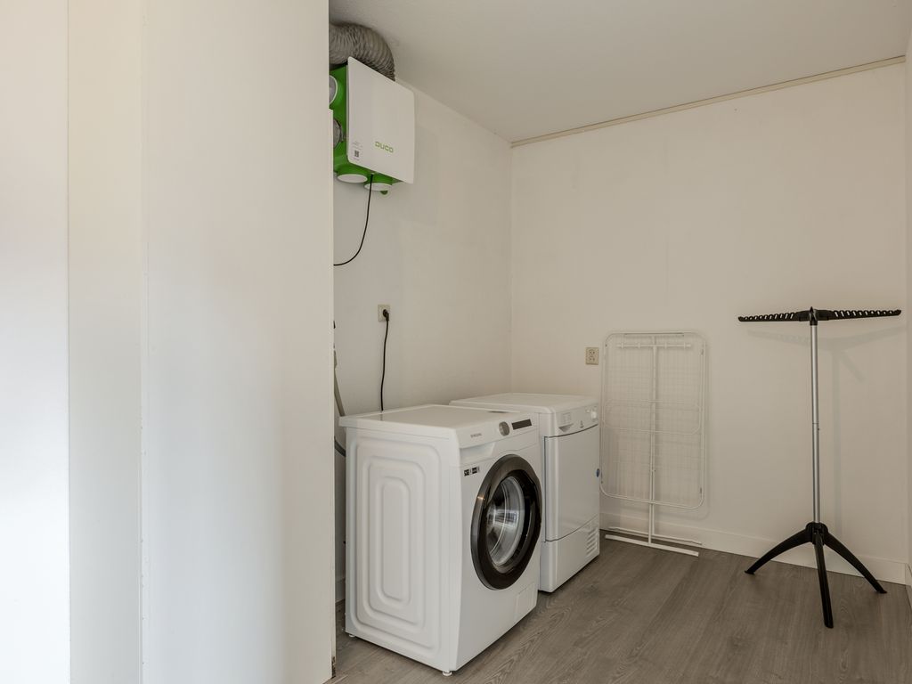 Via vaste trap bereikbare verdieping met overloop en toegang tot twee royale slaapkamers aan de voor- en achterzijde. Tevens toegang tot de multifunctionele berg-/wasruimte met aansluitpunten voor wasapparatuur.