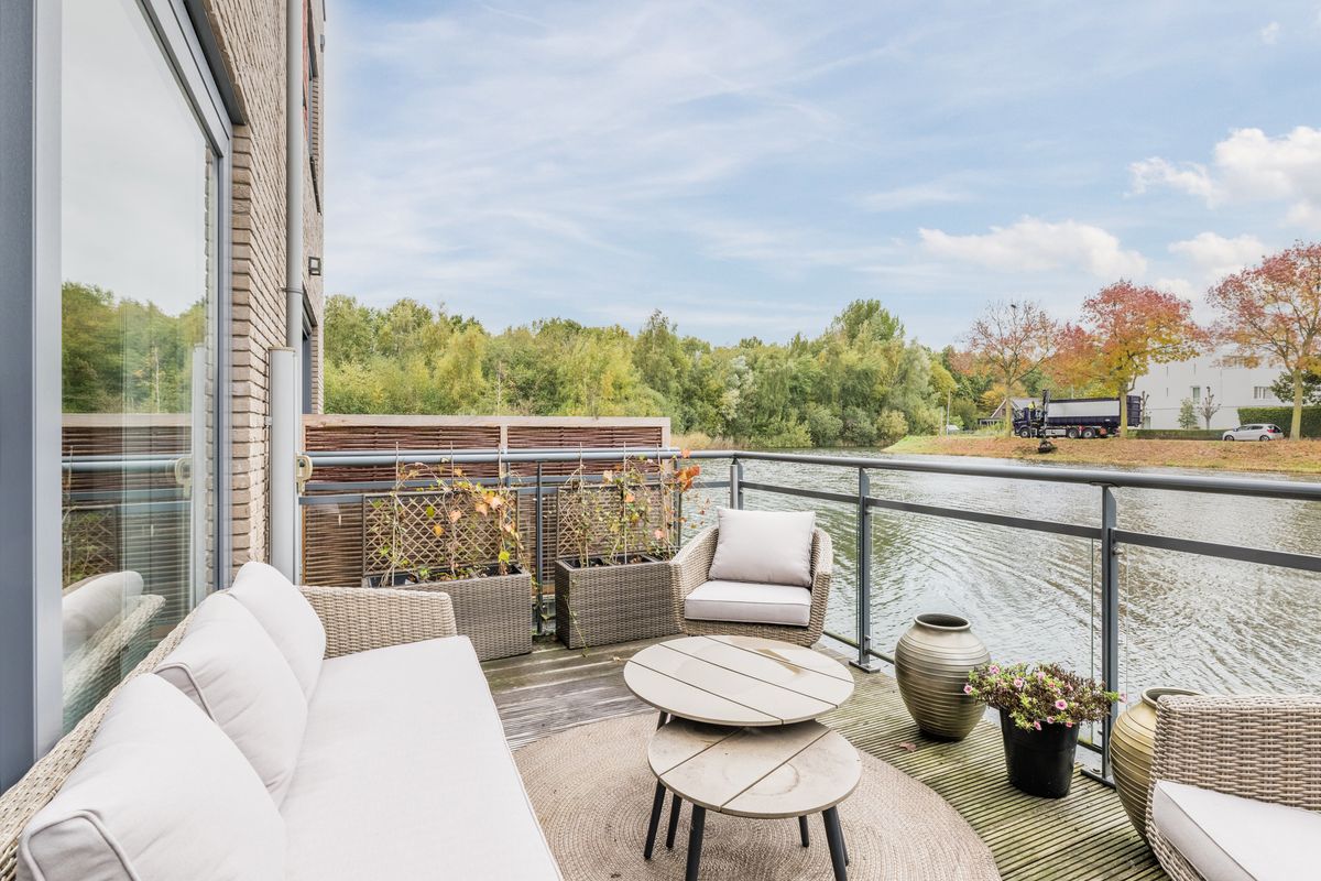 Schitterend gelegen waterrandwoning met balkon, dakterras en eigen parkeerplaats.