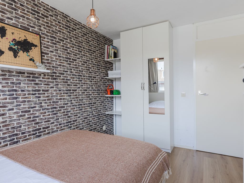 Tevens is er in de slaapkamer een groot Velux dakraam geplaatst en de ruimte is voorzien van een smaakvolle laminaatvloer.