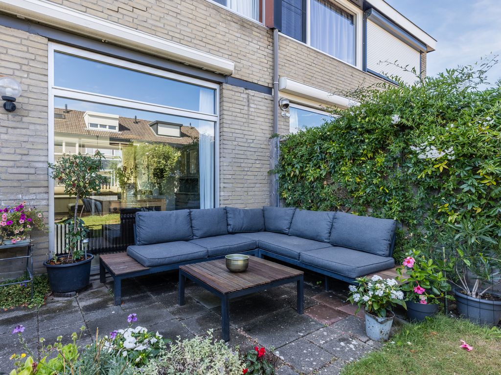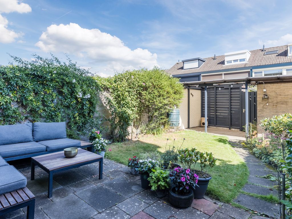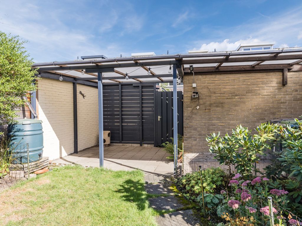 De achtertuin is bereikbaar vanuit de keuken en via de achterom. De tuin is voorzien van bestrating, vaste beplanting, een klein gazon en een praktische overkapping (2017) grenzend aan de berging met elektra.