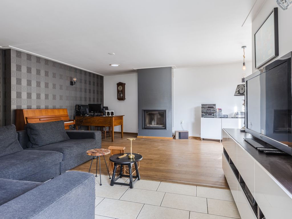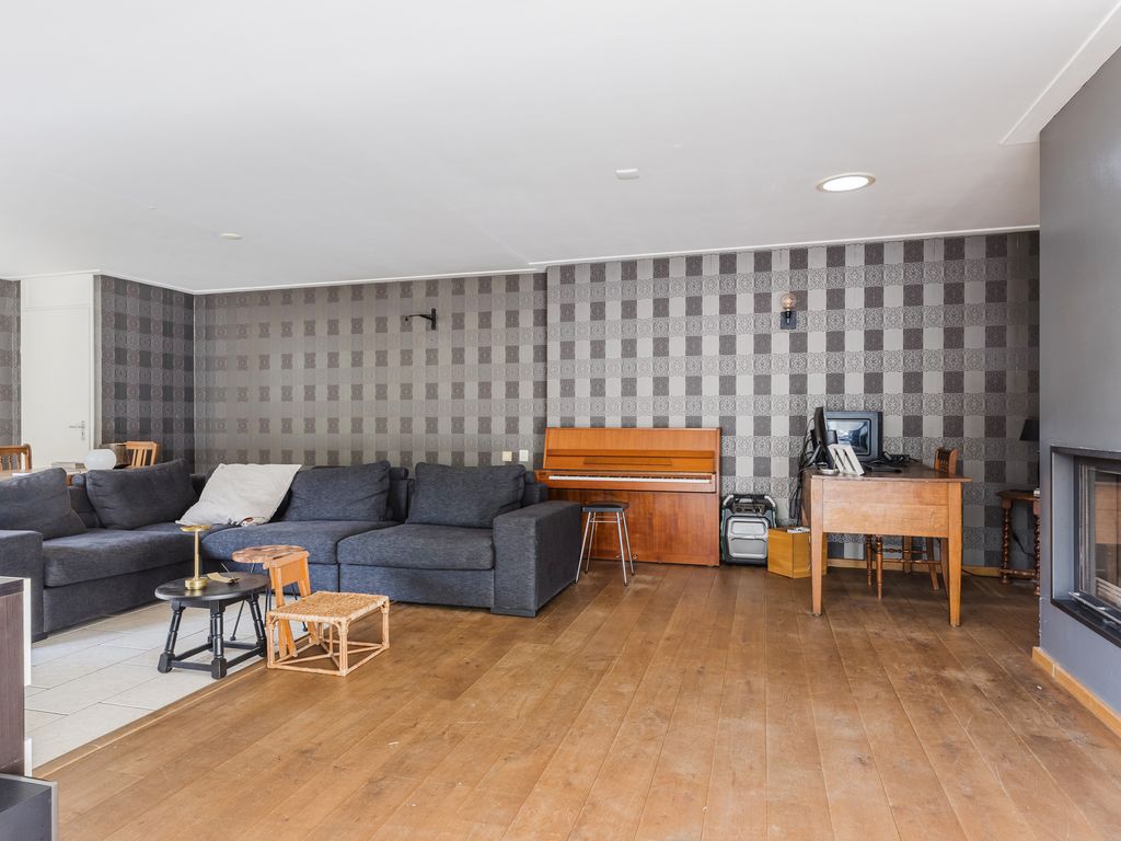 Hal/entree met meterkast, toiletruimte, trapopgang en het doorstroomapparaat. Vanuit de hal toegang tot de uitgebouwde woonkamer van ca. 50 m². Deze lichte ruimte is voorzien van een solartube, een strakke schouw met Barbas VHR inbouwhaard, praktische bergkast en vier openslaande deuren naar de tuin.